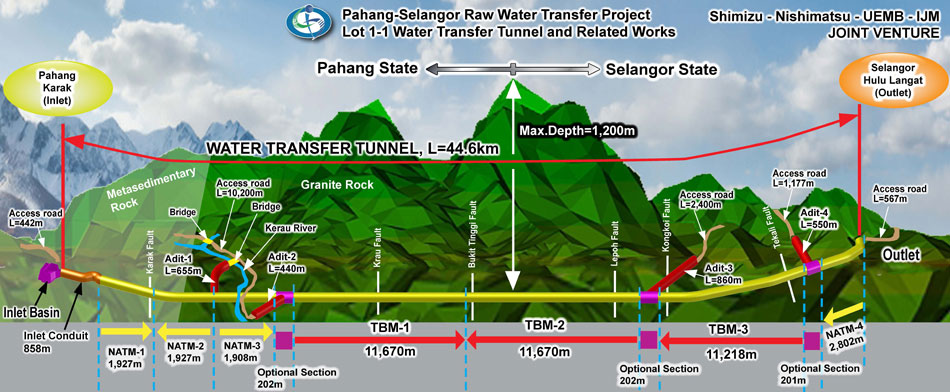 Not only did two Japanese companies provide the state-of-the-art tunnel boring technologies for the 446km long tunnel deemed Southeast. Sprayed Concrete PROJECT DESCRIPTION to transfer raw water from the Sementan river in Pahang state to a proposed water treatment works in Selangor on the outskirts of kuala lumpur a 446 km long transfer tunnel had to be constructed through the titiwangsa hill range. Jayakumar said with the successful completion of the tunnel his ministry is now planning similar projects in other areas especially in bringing water from a distance into needed areas-Bernama.